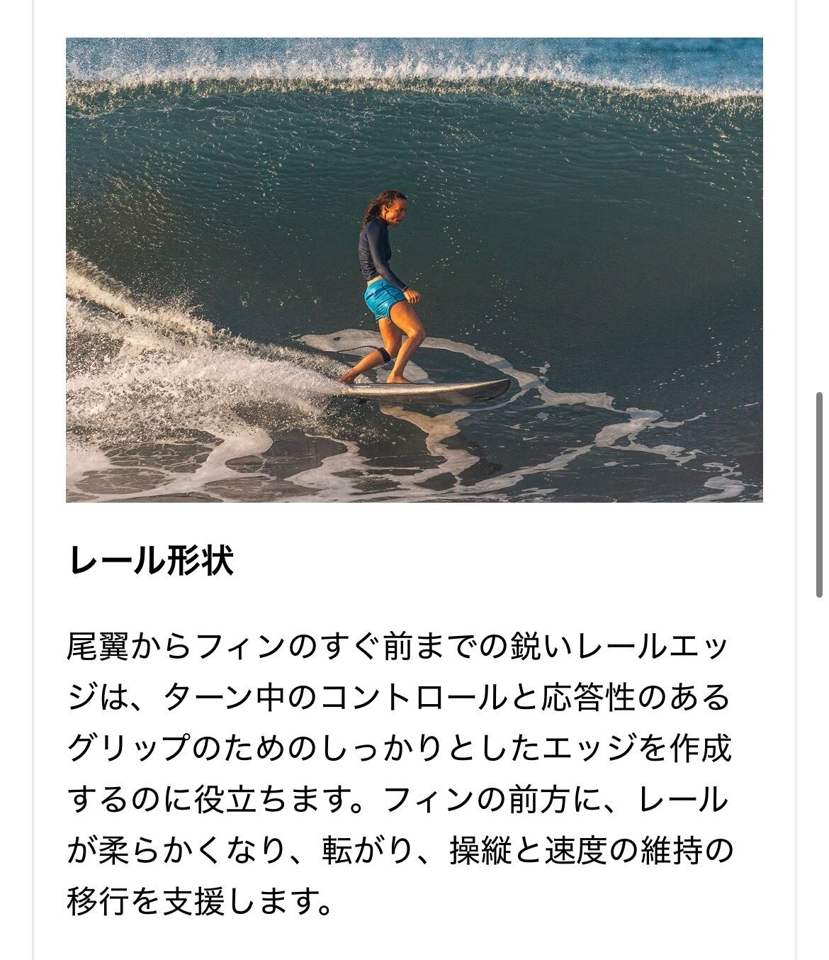 • 垂直なアクション: ターンのスイングウェイト(振り出しの重さ)を最小限に抑え、波のクリティカルセクションで垂直なリッピングを可能にします。